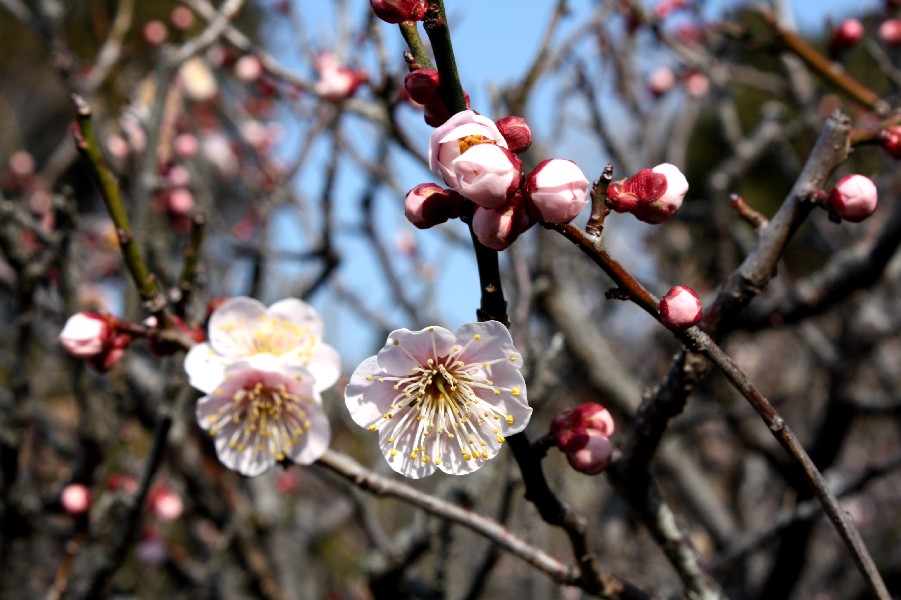 梅の花が一輪一輪と咲きはじめ、つぼみも膨らんできました。