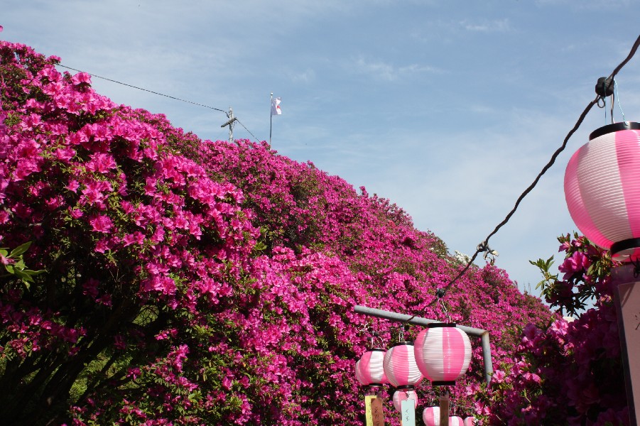 斜面を覆い尽くす赤いツツジは、山全体が赤く燃えている様に見えます。