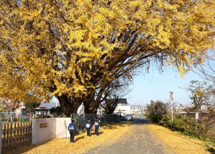 一言:銀杏が一気に落葉です。小学校の校庭にも通学路にも。 子供達は落ち葉で遊びながら学校を後にします。 通学したこの光景は大人になっても忘れることはないでしょう。