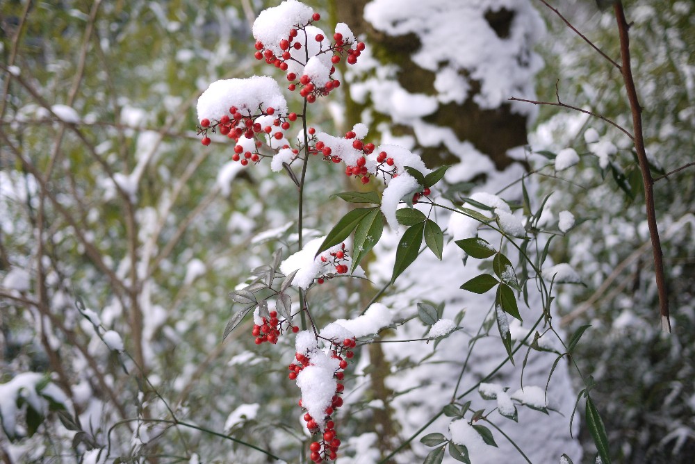 一言:明けましておめでとうございます。本年も「徳島の四季」をよろしくお願いします。 新年は寒波で幕を開けました。「徳島の四季」も西祖谷に帰省していた社員の写真で幕開けです。 一面雪の写真はモノクロになりますが、赤い実に積もった雪を撮ることによってカラーになりました。