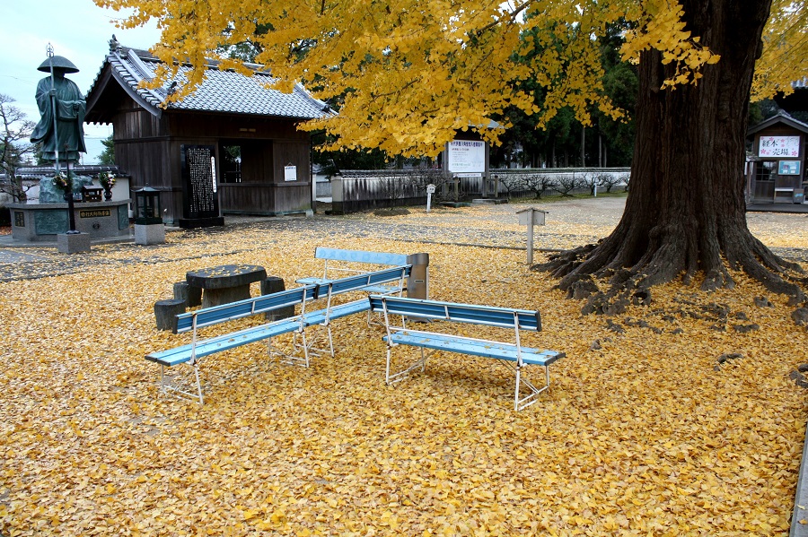 一言:樹齢800年の銀杏も冬支度です。一気に葉を落とし冬を迎えます。 さすがにこの時期になると、お遍路さんを見かけることも少なくなり、静まりかえった境内には 降り積もる銀杏の音さえ聞こえます。