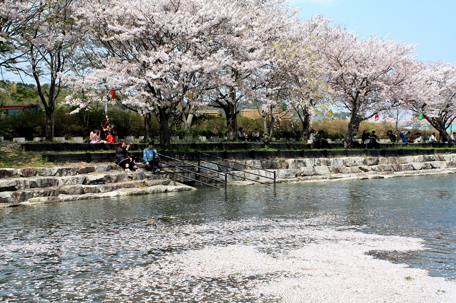 一言:今年の桜も見納めです。天候に恵まれなかった年になり、花見に出掛けた人も少なかった気がします。 ここ岩脇公園では、散り始めた桜の中、たくさんの人が花見を楽しんでいました。
