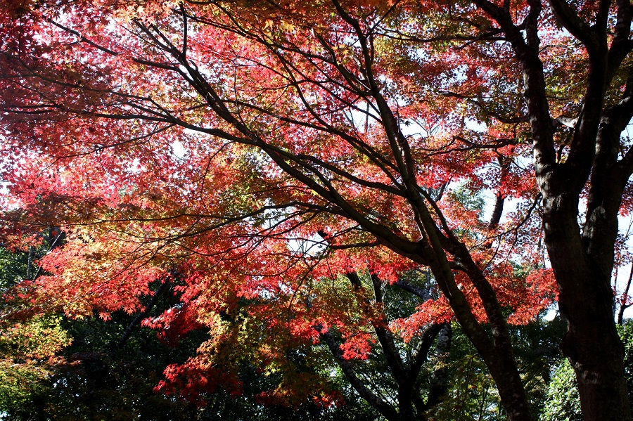 一言:山々が色づいてきました。車で走るのが楽しくなる季節の到来です。 今年は寒くなるのが早かったので、平地での紅葉もやや早いような気がします。 紅葉した木々に囲まれると、別世界に来たような気がします。