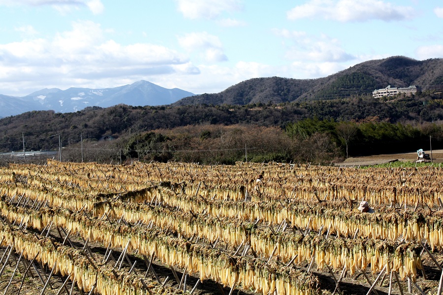 一言:厳しい寒さが続いています。 この寒さの中で農作業をする高齢者の夫婦を見かけました。徳島では見ることが少なくなった大根干しをしていました。 この大根はたくあんになるのでしょうか、それとも切り干し大根になるのでしょうか。 この夫婦が出来なくなったら、この風景も見ることが出来なくなるのでしょう。