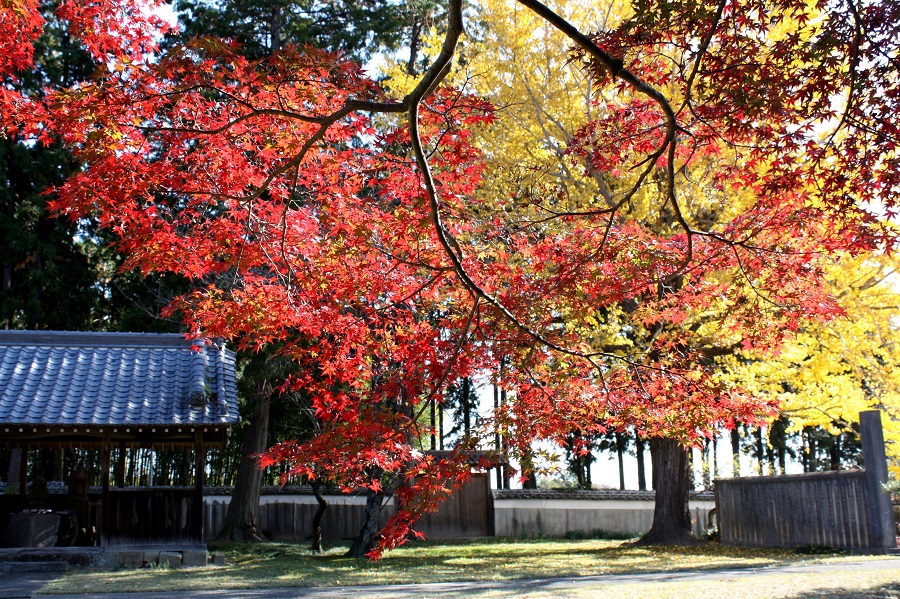 一言:地蔵寺の本堂はお遍路さんが多いのですが、奥の院羅漢堂は少し距離があるのでひっそりとしています。 ひっそりとした空気の中に黄色いイチョウと紅いモミジが同時に紅葉です。 静寂の中での華やかさは心に残ります。 なお、写真を撮ってからアップするまで時間が経っていますので、落葉して全く違う風景になっている ことも多々あります。この点はご容赦下さい。