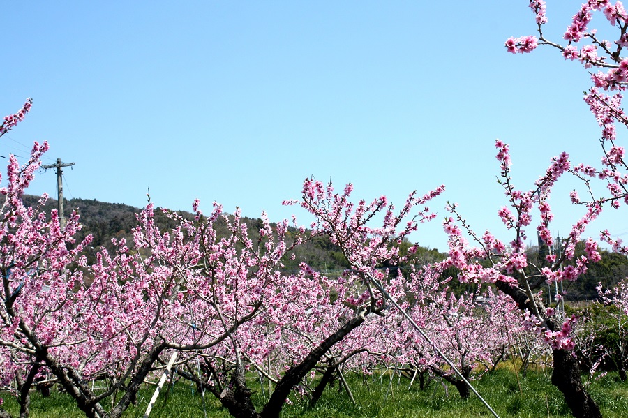一言:新元号が決まりました。なかなか良い元号だと思いました。 4月に入ると色が少なかった冬から景色が一変します。車窓から見える田舎の風景も明るくなりました。 これから満開を迎える桜の花より鮮やかな、ピンクの桃の花が咲き誇っていました。
