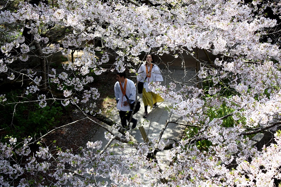 一言:この写真は一週間程前に撮ったものです。昨夜の春の嵐で散ってしまったかも知れません。 日本人は桜が大好きな人種です。もちろんその美しさもあるのですが、「パッと咲いてパッと散る」という潔い生き方に 憧れるからでしょう。 写真のお遍路さんは非常に若い方でした。コロナウイルスをやっつけるには「人に迷惑をかけない」という日本人の心が、 若者達に根付いているかどうかでしょう。日本人の心が試されています。