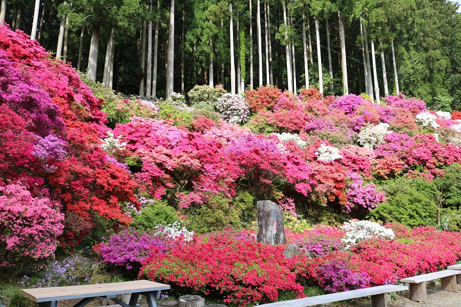 一言:徳島県では緊急事態宣言が解除されました。が、人の流れが以前の状態に戻るまでにはまだまだ時間がかかりそうです。 神山町では、杉山の中に、鮮やかなツツジが咲いていました。 「花の隠れ里」という名の通り、人里離れた場所にあり、周辺の杉の緑色が、ツツジの色合いを引き立ててくれています。 桜に続き、ツツジも綺麗に咲いてくれました。 今年は、例年に比べて、特に植物から季節感を感じさせられる1年になりそうです。 (撮影者:尾形)