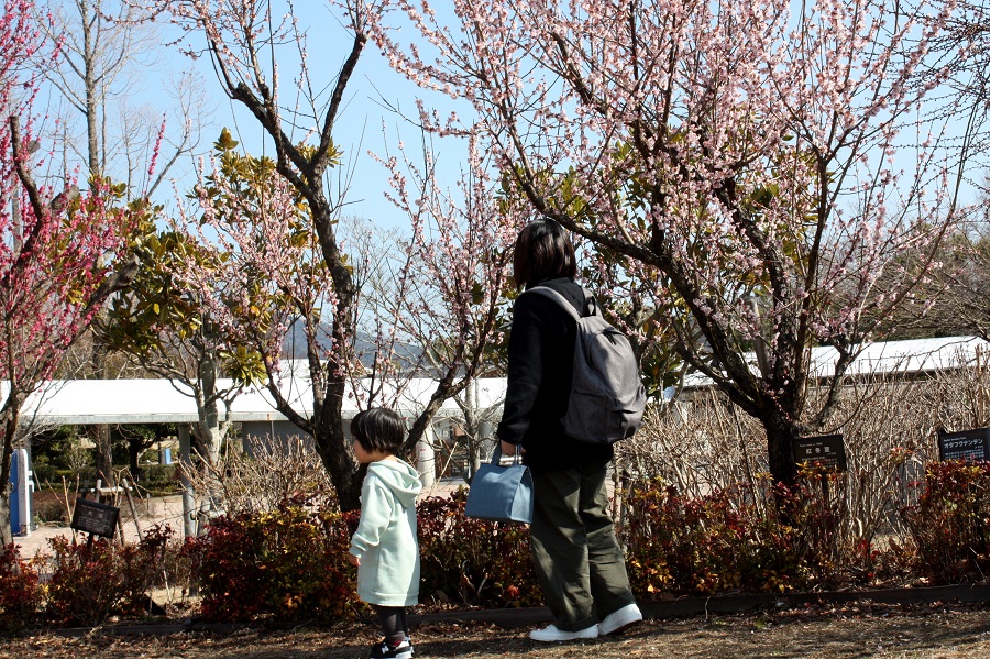 一言:春本番のような暖かい日が続きました。 この陽気に誘われて「あすたむらんど」にはたくさんの親子が出て来ていました。 日当りの良い場所の梅が見頃を迎えていました。写真を撮っていると可愛い子供さんがチョコチョコとやってきて、 その後を見頃の梅を気にしながらお母さんが追いかけて来ました。