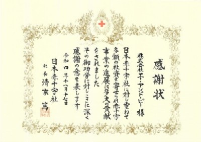 新型コロナウイルス感染症において、最前線で活動される医療従事者の皆様へ 支援をさせて頂きたく、日本赤十字社徳島県支部へ寄付を行いました。 一日も早い終息と、平穏な日々が戻りますことをお祈り申し上げます。 2020年9月 日本赤十字社徳島県支部 30万円寄付 2021年6月 日本赤十字社徳島県支部 50万円寄付 2022年6月 日本赤十字社徳島県支部 50万円寄付 2021年1月 日本赤十字社徳島県支部より銀色有功章を頂きました。 ![]() 2021年6月 日本赤十字社徳島県支部よりお礼状を頂きました。 ![]() 2021年11月 日本赤十字社徳島県支部より金色有功章を頂きました。 ![]() 2022年6月 日本赤十字社徳島県支部よりお礼状を頂きました。 ![]() 2022年11月 日本赤十字社より感謝状を頂きました。 ![]() |