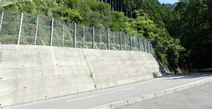 【一般構造物設計】 主要地方道山城東祖谷山線が三好市西祖谷田ノ内を通過する箇所において、道路改良工事に伴う法枠工詳細設計を実施。業務箇所は現道山側斜面を切土により拡幅する計画であり、切土面は高さ約20mを有する。 |