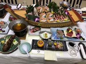 海鮮尽くしの夕食をいただき、のんびり温泉へ。