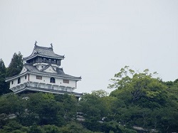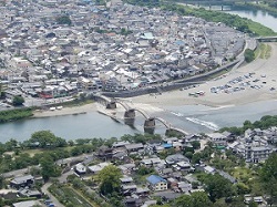 岩国城へロープウェイで登っていき、天守閣から錦帯橋を眺めます。