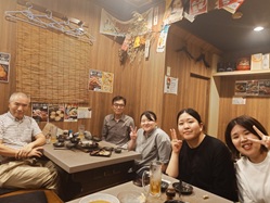 疲れた体を癒すため、おいしい料理を舌鼓。お酒も入りながら会話も弾みます。